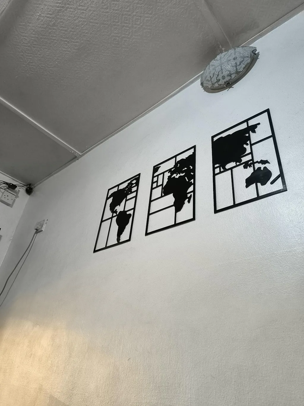 Crafted from high-quality black laser-cut acrylic, these three pieces seamlessly come together to form a captivating representation of the world's continents. Whether you're a seasoned traveler or a dreamer with a love for adventure, this wall decoration serves as a visual reminder of the vast beauty and endless possibilities that our world holds.